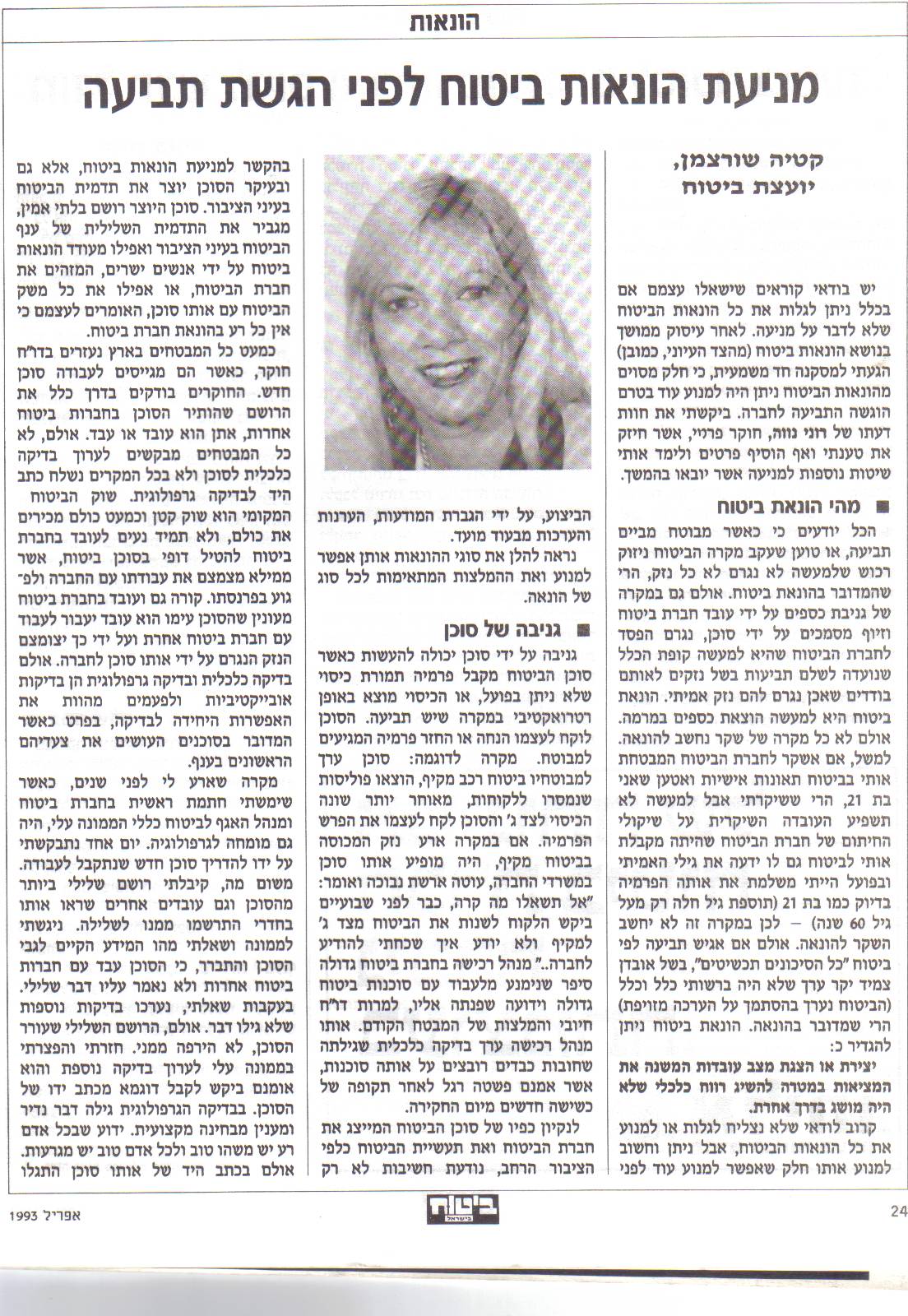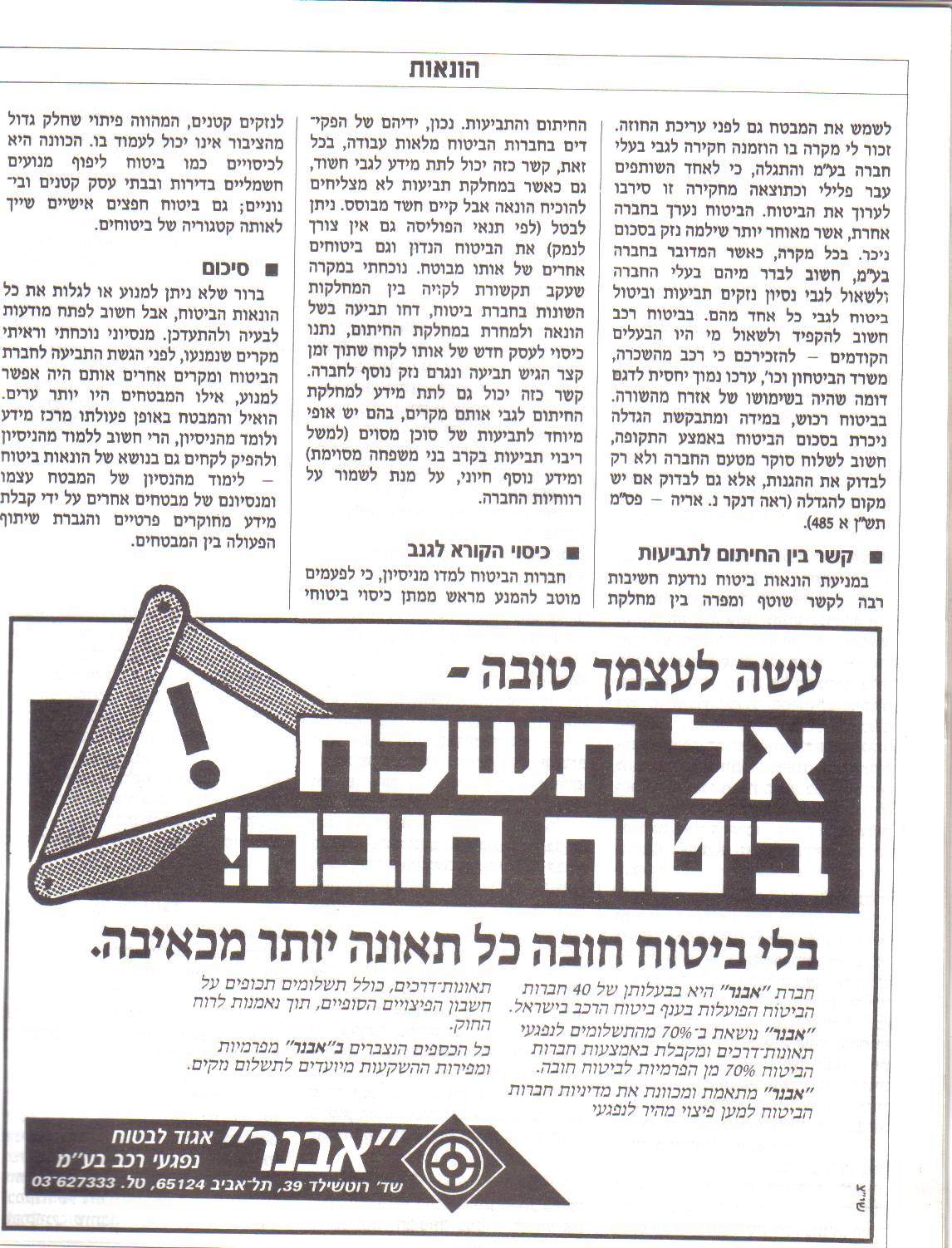 מקור הכתבה: ביטאון "ביטוח בישראל" אפריל 1993 בעריכתו של